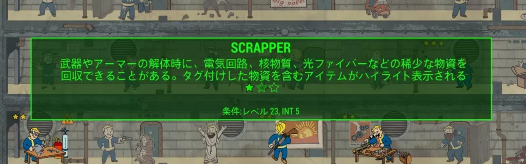 Intelligenceを5まで上げると、「Scrapper」というPerkを取得できるようになります。